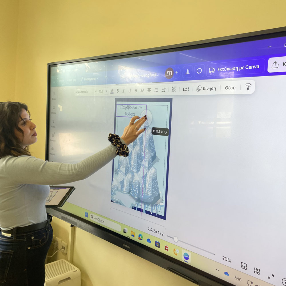 Στην αρχή, τα παιδιά μας εξοικειώθηκαν με την έννοια της κλιματικής αλλαγής και του ανθρακικού αποτυπώματος και έμαθαν για ποιο λόγο η αύξηση της θερμοκρασίας του πλανήτη μας, το λιώσιμο των πάγων και η άνοδος της στάθμης της θάλασσας επηρεάζουν την καθημερινότητα όλων μας. Ταυτόχρονα, μέσα από διαδραστικά εργαλεία και προβολή υλικού, συζητήσαμε τις αιτίες και προσπαθήσαμε να δώσουμε λύσεις ξεκινώντας … από το σχολείο μας.