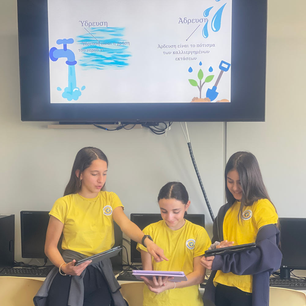 Οι μαθητές και οι μαθήτριες του Α2 μελετούν τα προβλήματα που αντιμετωπίζουν τα νησιά μας λόγω της έλλειψης νερού. Αφού ανέλυσαν τα βασικά προβλήματα λειψυδρίας και εντόπισαν τους γεωγραφικούς, κλιματικούς και οικονομικούς παράγοντες που εντείνουν το πρόβλημα, αναζήτησαν βιώσιμες λύσεις για την επίλυσή του.