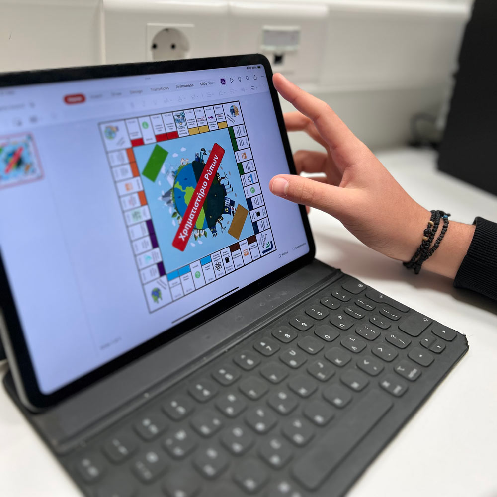 Με εφόδιο τις γνώσεις που παίρνουν στα μαθήματα Γαλλικών, Γερμανικών και Ισπανικών, τα παιδιά ετοιμάζουν παιχνίδια και δραστηριότητες για να παρουσιάσουν στο Φεστιβάλ του σχολείου μας. Χρησιμοποιώντας κάθε φορά την γλώσσα που έχουν επιλέξει να μάθουν, εξετάζουν το Χρηματιστήριο Ρύπων, ένα εργαλείο πολιτικής που χρησιμοποιούν Κυβερνήσεις και Επιχειρήσεις, προκειμένου να επιτύχουν περιβαλλοντικούς στόχους. Δημιουργούν τα δικά τους επιτραπέζια αλλά και ψηφιακά παιχνίδια και περιμένουν μικρούς και μεγάλους επισκέπτες του Φεστιβάλ για να παίξουν!