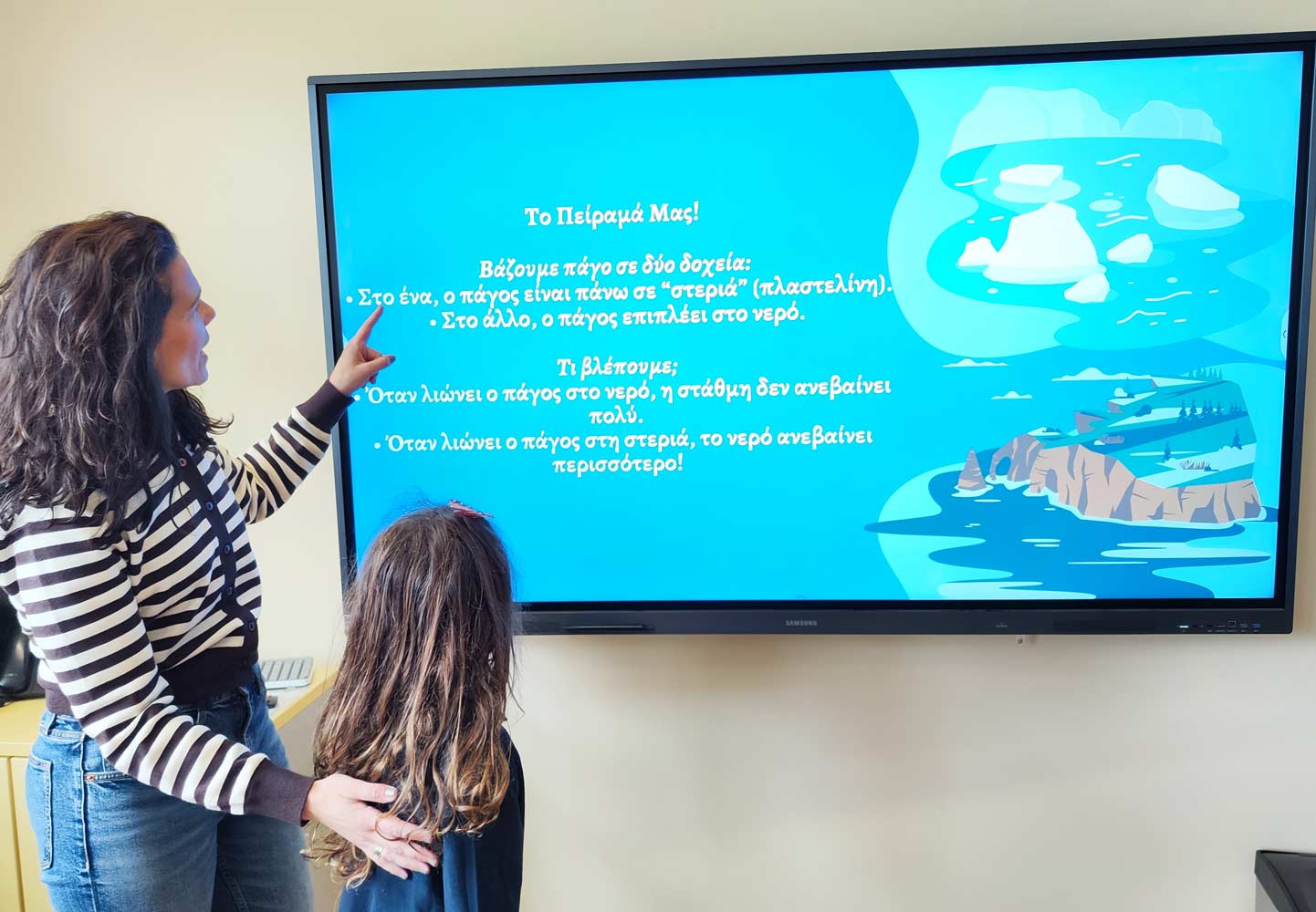 Τα παιδιά μας μελέτησαν γεωφυσικούς χάρτες και με φαντασία δημιούργησαν τις δικές τους ενημερωτικές αφίσες. Ακόμα, χωρίστηκαν σε ομάδες, τους «Φύλακες των Πάγων» και τα «Παγόβουνα εν Δράσει», οι οποίες είναι έτοιμες να συμβάλλουν στην ευαισθητοποίηση για την προστασία του πλανήτη μας.